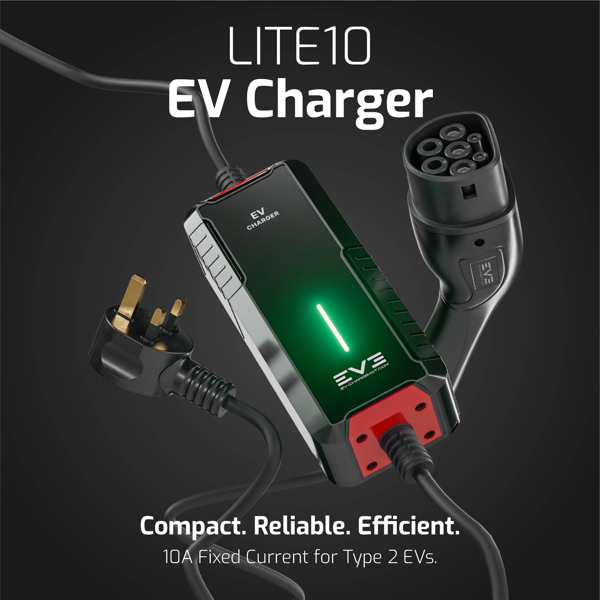 LITE10 Series - Type 2 EV Charger | 10A Fixed Current, Plug & Play Simplicity, Weatherproof, UK Plug