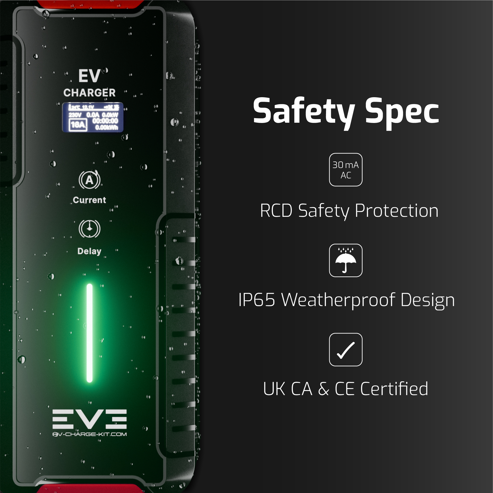 Built-in 30mA RCD protection for enhanced safety, giving you peace of mind with every charge.